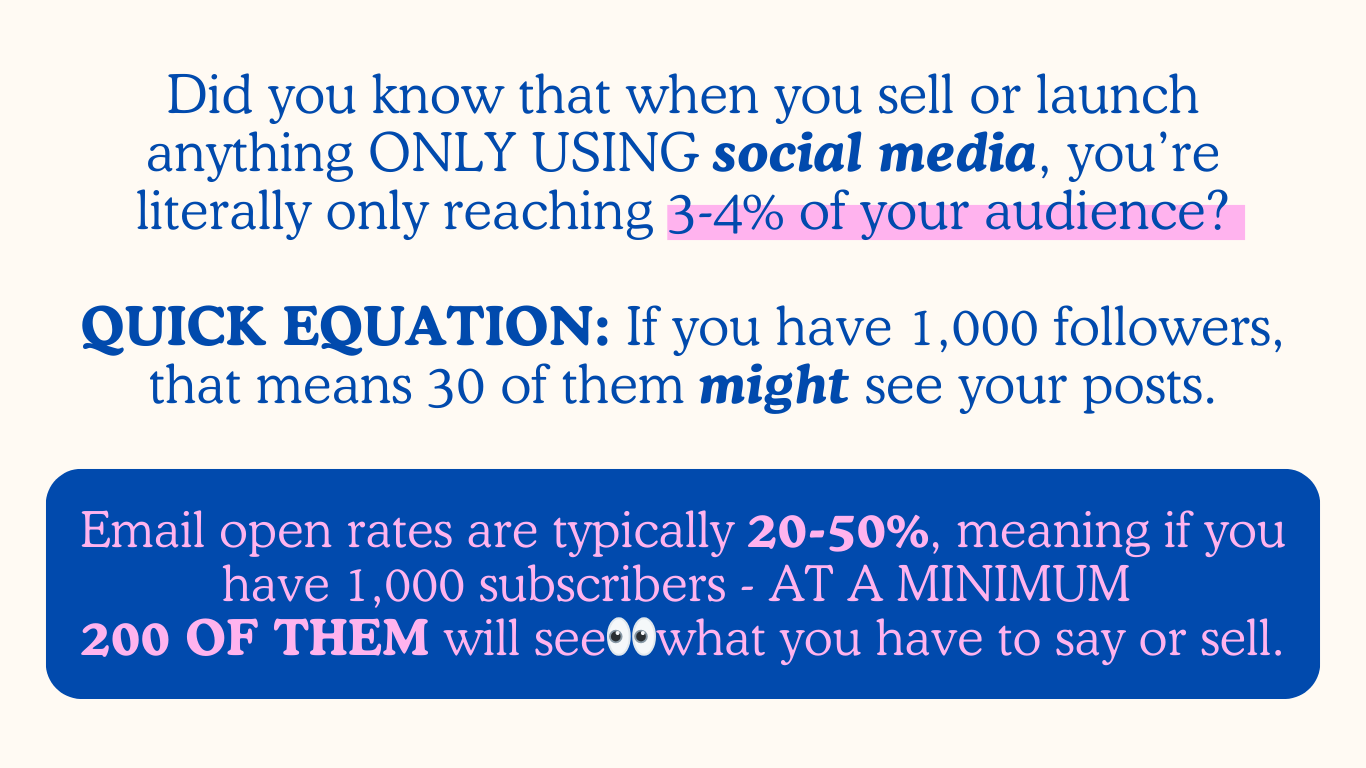 Let’s be honest… every day you wait to start your email list is another day your dream clients are slipping through your fingers.